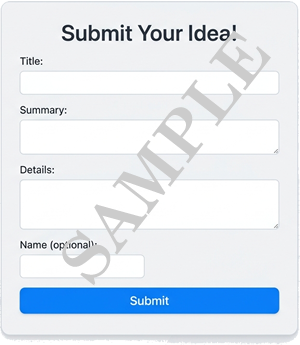 summary and details of their great ideas, and, optionally, their names.